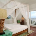 В люксе имеется гостиная с плюшевой мебелью и отдельный обеденный уголок. Из окон открывается вид на океан. Светлые номера отеля оформлены в карибском стиле и обставлены колониальной мебелью. Во всех номерах установлены кровати с балдахином.
