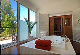 Все виллы имеют изысканный вид. В них установлены собственные гидромассажные ванны и сауны для двоих, а также камины. Из каждого окна открывается красивый вид на кусты. Также к вашим услугам изысканные кровати с упругими матрасами для максимального комфорта, заправленные белым хлопковым бельём и украшенные романтическими балдахинами.