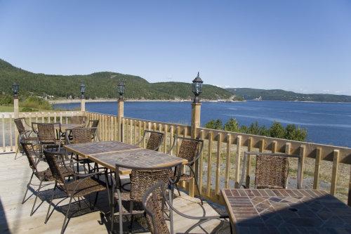 С террасы ресторана мотеля Le Vacancier открывается потрясающий вид на устье фьорда Сагеней. Гости могут насладиться блюдами изысканной кухни на завтрак, обед и ужин.