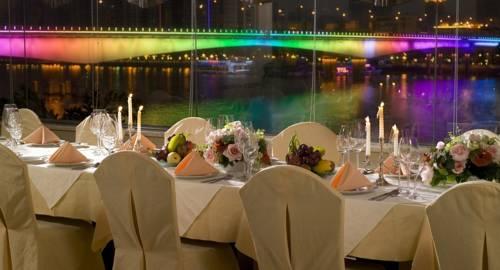 Приготовленные на гриле блюда и кушанья западной кухни вам предложат в кафе Moon River, в то время как блюда кантонской кухни можно отведать в китайском ресторане Riverside. Легкие закуски и коктейли представлены в лобби-баре. Производится обслуживание номеров.