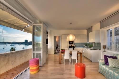 Роскошные, современные апартаменты Split Riva Front View с видом на известную набережную Рива и залив Сплит разместились на 3 этаже здания, пристроенного к южной стене древнего Дворца Диоктелиана и средневековому венецианскому замку.