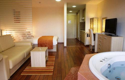 Спа-центр оборудован гидромассажными ваннами с термальной водой, саунами и зоной отдыха с подогреваемыми скамейками. Посещать спа-центр можно совершенно бесплатно.