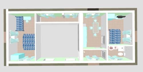 Во всех апартаментах есть полностью оборудованная кухня, столовая зона и гостиная с диваном и спутниковым телевидением, а также стиральная машина.