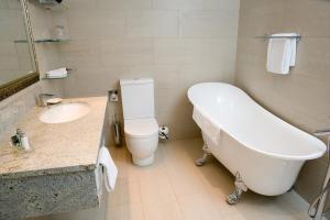 В всех номерах отеля Hesselet есть ванная комната с двойной раковиной и отдельной ванной и душем.