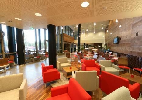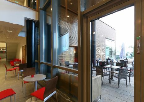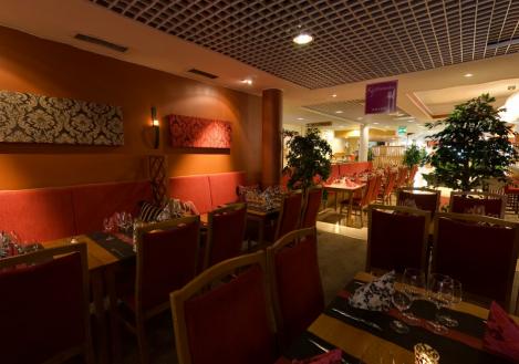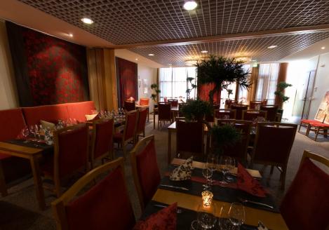 После расслабляющей финской сауны или турецкой бани гости могут выпить на террасе отеля. В ресторане отеля гостям предлагаются как блюда со шведского стола, так и из отдельного меню.