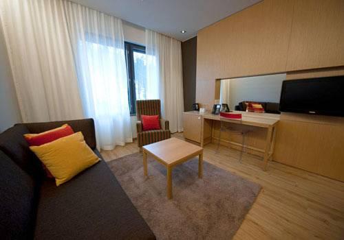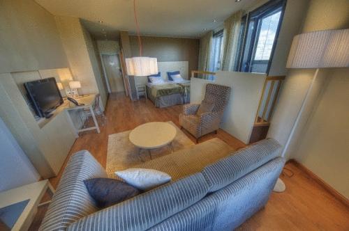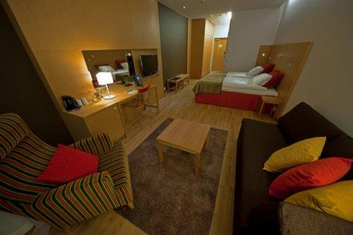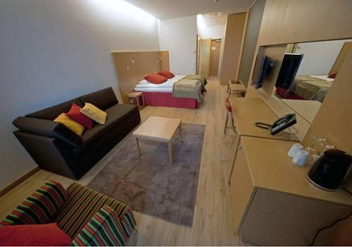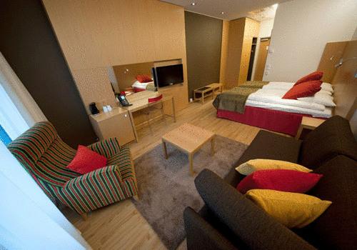 Все номера отеля Levi Panorama оформлены в скандинавском стиле. В каждом номере имеется мини-бар и гостиный уголок. Из некоторых номеров открывается вид на горнолыжные спуски.