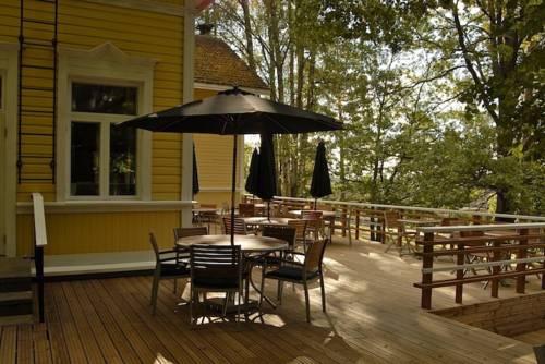 В ресторане можно заказать блюда карельской кухни, а также традиционные финские кушанья по меню. В теплое время года трапеза сервируется на крытой террасе.