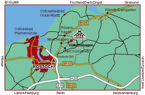 Это 3-звездочный отель расположен всего в 12 км от Ростока и балтийского курорта Варнемюнде, в тихом месте в городе Фолькенсхаген, в непосредственной близости от автострады B105.