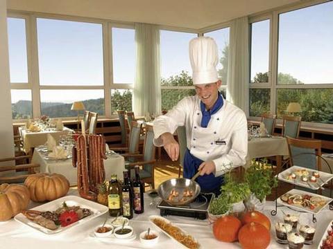 Гости могут отдохнуть в ресторане Kaminzimmer с открытым камином и попробовать традиционные для Тюрингии блюда. Из ресторана Frankenblick можно полюбоваться панорамным видом на окрестности. В баре подают коктейли и разливное пиво. На террасе можно подышать свежим воздухом.