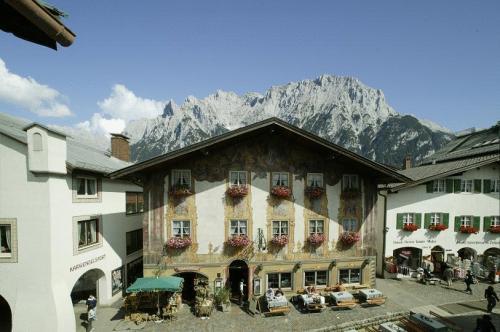 Этот очаровательный пансион расположен в городе Миттенвальд, в 15-ти минутах езды от замка Эльмау. Он предлагает традиционные номера, ресторан с развлекательной программой и открытое кафе.