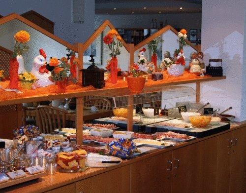 Каждое утро для гостей подают разнообразный завтрак "шведский стол". В баре отеля или на террасе в саду можно выпить бокал баденского вина или кружку освежающего пива.