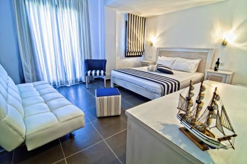 В открытом до позднего вечера кафе-баре отеля гости могут насладиться освежающим коктейлем, кофе или десертом. В деревне Агиос Иоаннис имеется множество баров, ресторанов и туристических магазинов.