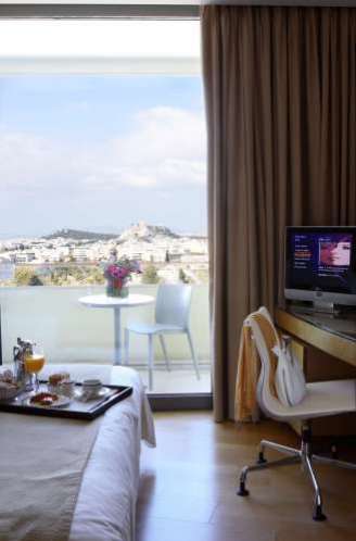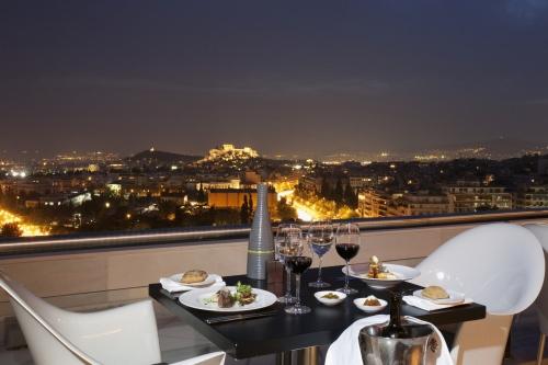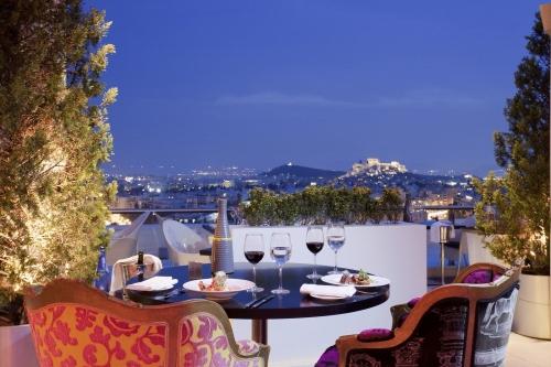 Каждую ночь в баре на крыше отеля его посетители могут наслаждаться музыкой, коктейлями, легкими закусками и любоваться панорамой Акрополя с его эффектно подсвеченными древними храмами.Отель расположен на одной из самых фешенебельных улиц Афин, вблизи делового центра города, до аэропорта 34 км