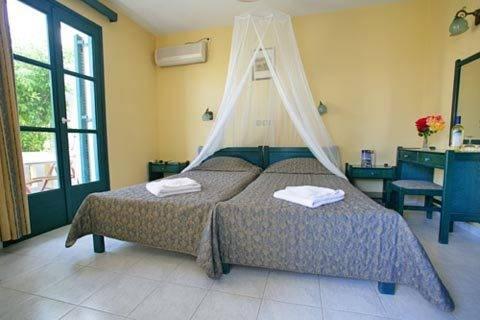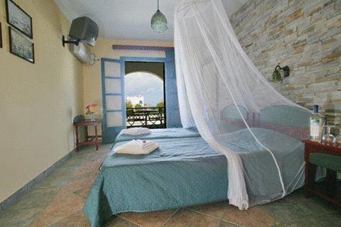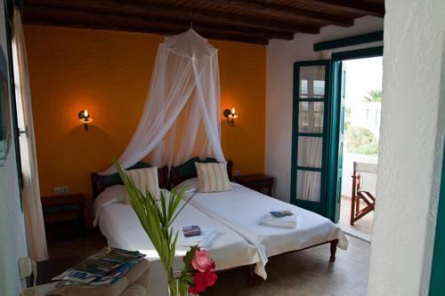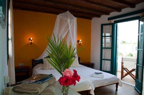 Отель стоит в окружении сада и выстроен в традиционном кикладском стиле. На садовой террасе по утрам сервируют сытный завтрак "шведский стол".