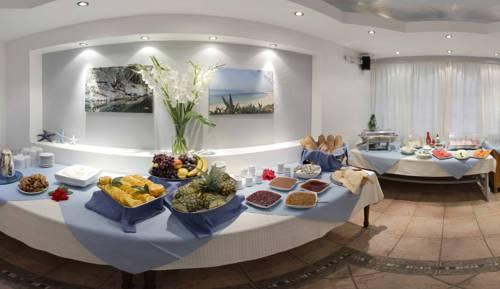 При отеле есть пляжное кафе, расположенное всего в 100 метрах от самого отеля, где можно заказать закуски и салаты. Раз в неделю предлагается барбекю, "шведские столы" греческой кухни и пасты.