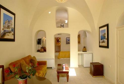 Реконструированный отель рад приветствовать гостей в современных роскошных люксах, которые сохранили первоначальные высокие купольные потолки и арки. Из окон открываются очаровательные виды на Эгейское море и знаменитый закат.