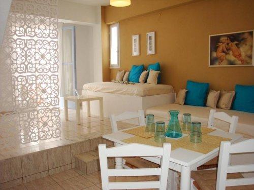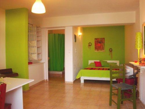 Просторные апартаменты Elkaza оформлены в светлых и ярких тонах. Они оснащены мини-кухней, гостиным уголком, телевизором и CD-плеером. Некоторые из апартаментов располагают балконом с видом на Эгейское море.