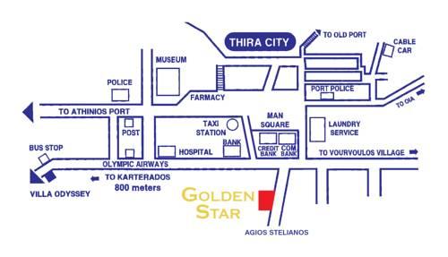 Отель Golden Star расположен всего в 150 метрах от главной площади Фиры. К услугам гостей недорогие номера, находящиеся недалеко от всех туристических объектов и общественного транспорта.