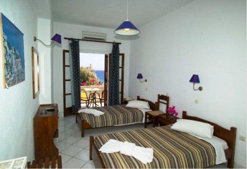 Прямо перед отелем расположен кафе-ресторан Nostos с видом на море. Здесь можно заказать напитки, а также пообедать или поужинать. По утрам сервируется континентальный завтрак.