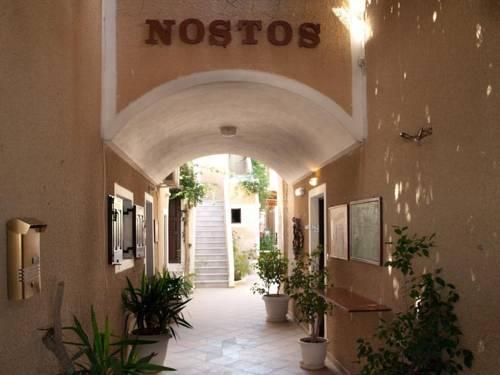Номера отеля Nostos оформлены в традиционном кикладском стиле. Они оснащены холодильником и спутниковым телевидением. Все номера имеют собственную ванную комнату с душем.