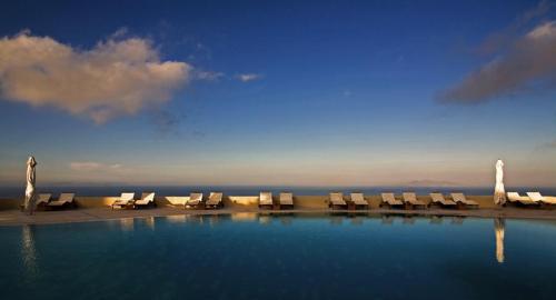 Отель Majestic возвышается над драматическими скалами Санторини. Отель предлагает звукоизолированные номера с балконами, откуда открываются виды на Эгейское море и вулкан.