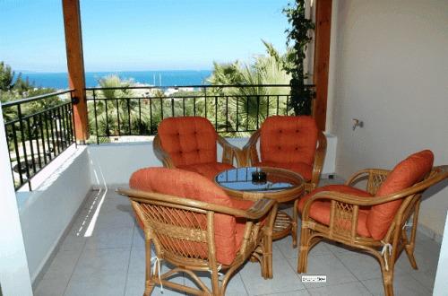 В хорошо оборудованных апартаментах есть меблированный балкон с видом на море, бассейн и сады.
