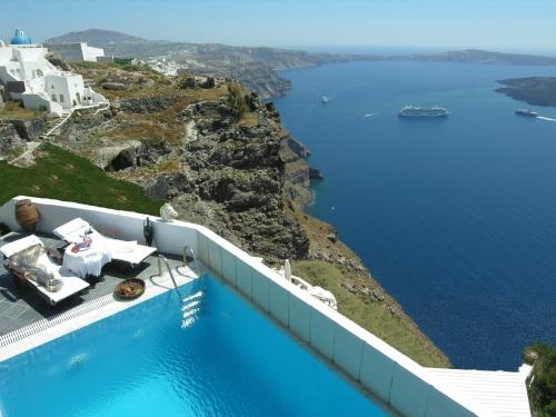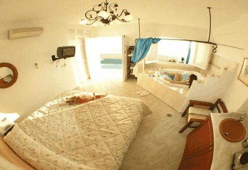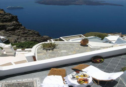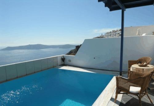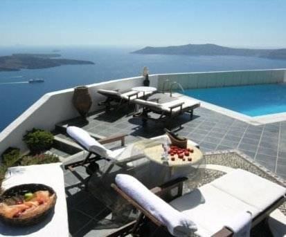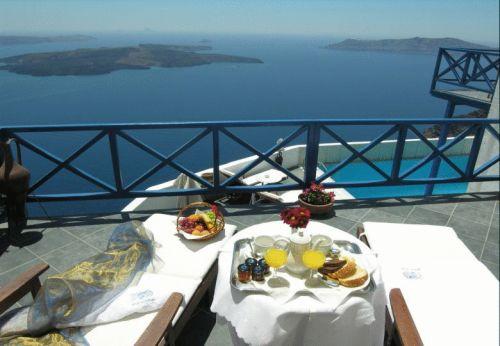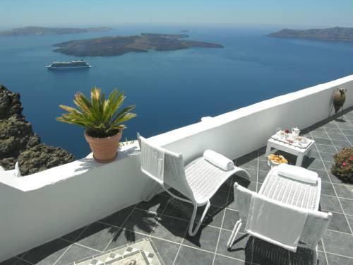 Этот отель разместился на вершине утеса на Санторини, откуда открываются захватывающие панорамы на кальдеру и Эгейское море. Во всех номерах к вашим услугам гидромассажная ванна и балкон, также имеется открытый бассейн с террасой.
