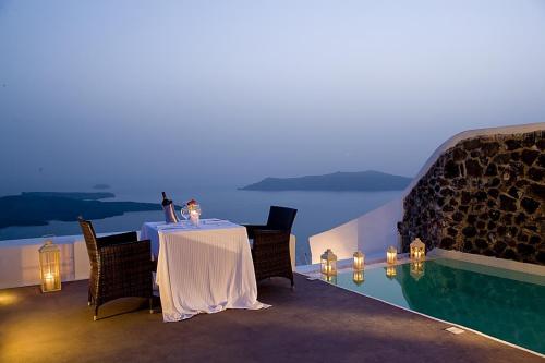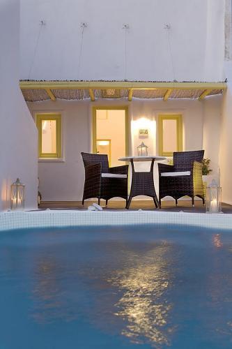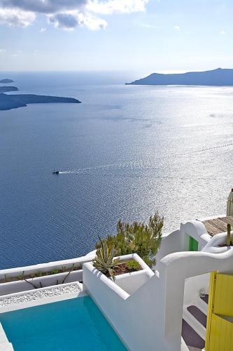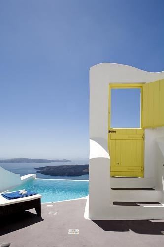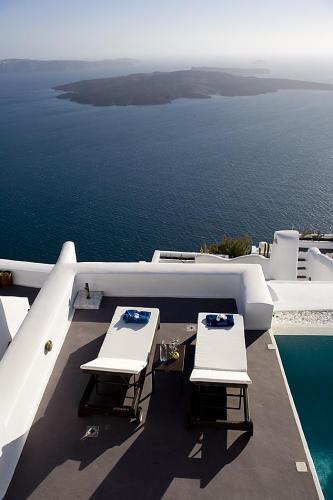 Все люксы оформлены в кикладском стиле и располагают собственной террасой с бассейном или гидромассажной ванной с видом на живописную кальдеру и Эгейское море. Благодаря небольшому количеству люксов, гостям гарантируется высокое качество обслуживания и проживание в уединенной атмосфере.