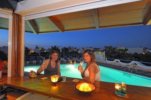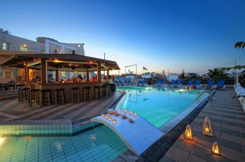 Отель Filia расположен в восьми минутах ходьбы от песчаного пляжа и недалеко от нескольких магазинов и таверн. В отеле есть свой собственный большой бассейн с оживленным баром у бассейна.