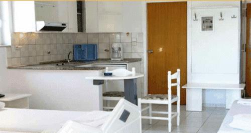 К услугам гостей кухня открытой планировки с плитой и большим шкафом для посуды и продуктов. Некоторые номера оснащены обеденным столом на двоих.