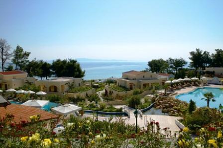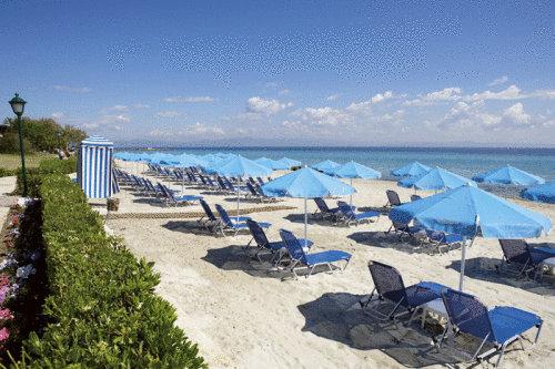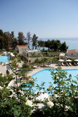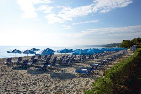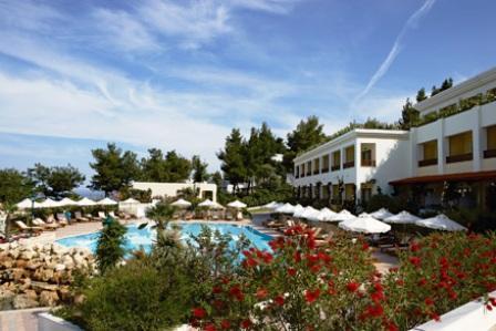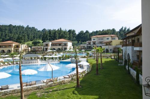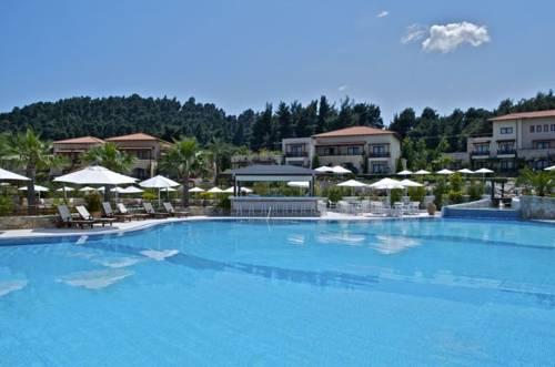 5-звездочный отель Aegean Melathron окружен лесом, который простирается до отдельного пляжа у залива Торони. Гости могут бесплатно посещать спа-центр, тренажерный зал и 4 плавательных бассейна.
