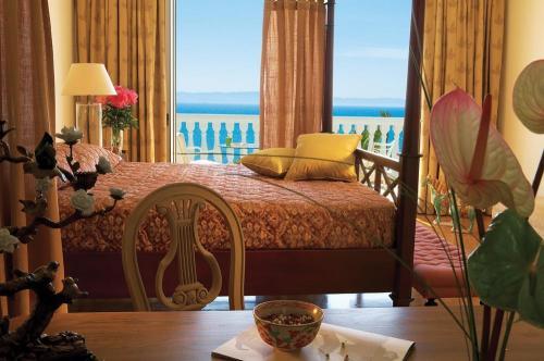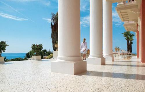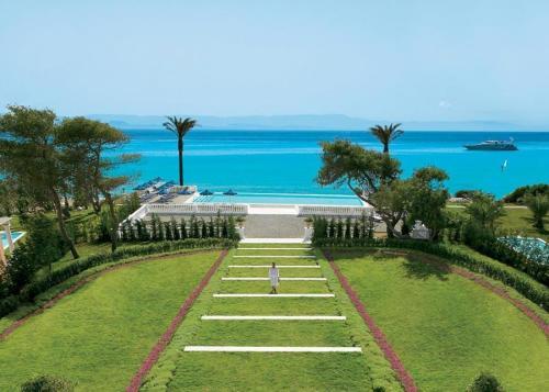 Вы сможете полюбоваться его дизайном с преобладанием белых и розовых тонов, вдохновленным стилем Прекрасной эпохи. Тонким дополнением к оформлению отеля Mandola Rosa служит цветущий миндаль прилегающей Олимпии, который дал название отелю. Люксы и виллы курорта предлагают уединенный мир элегантности, теплоты и изысканности. Стойка регистрации и главный лаундж раскинулись на широкой террасе с видом на панорамный бассейн с морской водой. Побалуйте себя массажем под открытым небом на крыльце храма в центре талассотерапии Elixir площадью 4500 м?. В центре предлагается полный спектр процедур и элегантные удобства, в том числе талассо бассейн, даже более великолепный и роскошный, чем прекраснейшие римские термы.