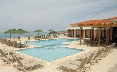 Зал для завтраков из камня, залитый греческим солнцем, находится рядом с бассейном. Отсюда открывается панорамный вид на Ионическое море. Прекрасное месторасположение комплекса Messina Mare идеально подходит для полноценного спокойного отдыха.