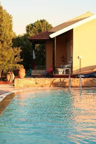 Гости могут расслабиться в шезлонгах у открытого бассейна.