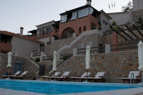 Отель состоит из 4 зданий, построенных в виде амфитеатра. Из окон открывается вид на море. Каждое здание состоит из 2 роскошных вилл с самообслуживанием. Красивый открытый бассейн находится в самом низком месте с видом на море.