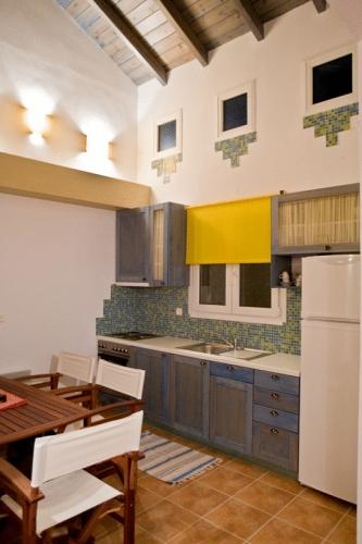 Во всех зданиях есть деревянные потолки, каменные стены. Архитектурный стиль зданий в наполнен уникальными эмоциями, но в то же время оснащен современными технологиями. В каждом здании есть полностью оборудованная кухня с посудомоечной машиной, камин и балкон с удивительным видом на море.