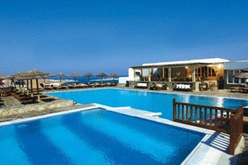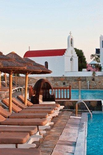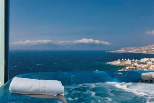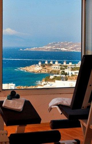На территории 3-звездочных спа-отелей и центра талассотерапии Myconian имеется тренажерный зал, спа-салон, большие террасы с видом на 2 многоуровневых бассейна и Эгейское море и гидромассажная ванна на открытом воздухе. Перед гостями открывается великолепный вид. Также предоставляется бесплатная частная парковка на территории комплекса.