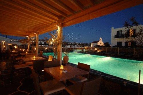 В ресторане Windmills с обслуживанием по меню и видом на бассейн и знаменитые ветряные мельницы города Миконос подаются блюда средиземноморской кухни. В баре у бассейна Veranda с великолепным видом на море можно заказать напитки и легкие закуски.