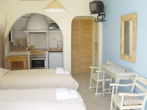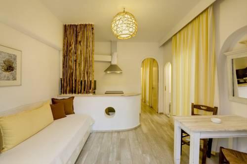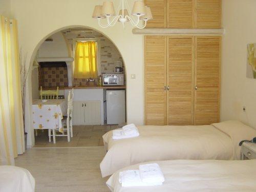 Номера с коваными кроватями оснащены кондиционером, обставлены деревянной мебелью и оформлены в традиционном кикладском стиле. Кроме того, предоставляются телевизор и DVD-плеер. В некоторых номерах гостей ожидают полностью оборудованная кухня и меблированный балкон или веранда с видом на Эгейское море или сад.