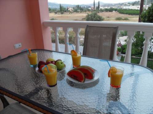 Каждое утро в очаровательном саду пансиона Omorfi Poli подается вкусный завтрак, в состав которого входит свежая выпечка и домашний джем.