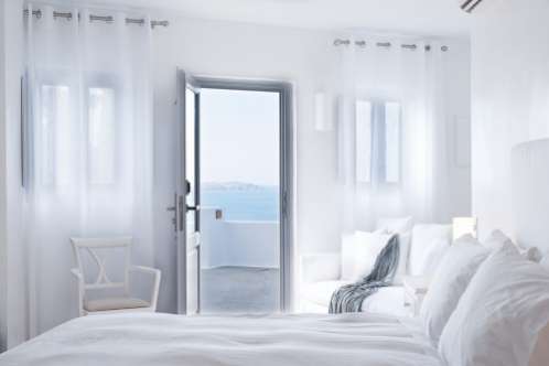 Во всех номерах, стены в которых побелены в белоснежный цвет, имеется частная терраса с незабываемым видом на море. Все номера оборудованы кондиционером, спутниковым телевидением и CD-плеером. В распоряжении гостей мини-бар, небольшой винный погреб и холодильник.