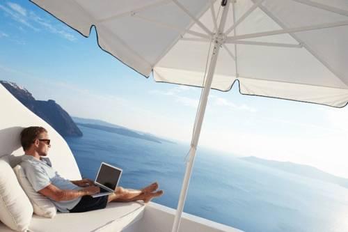 Отель Vip Suites построен на скалистом утесе в живописной деревне Ия, Санторини, Киклада, Греция.