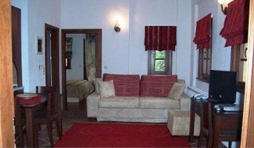 Просторные люксы и апартаменты Mikro Kazaviti оборудованы кондиционером. В них есть гостиная с камином, телевизором и DVD-плеером. Во всех номерах также стоит холодильник.