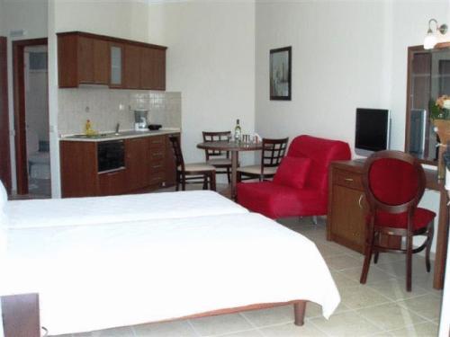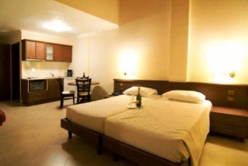 С частных балконов всех номеров открывается вид на Ионическое море и пляжи Вальтос Аммудиа. Также в номерах есть полностью оборудованные кухни и спутниковое телевидение.
