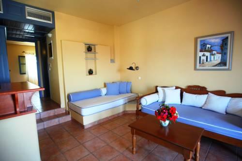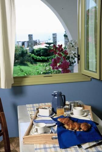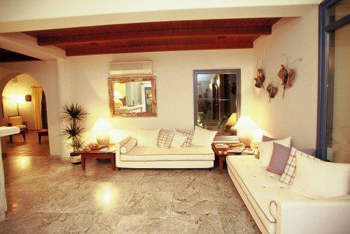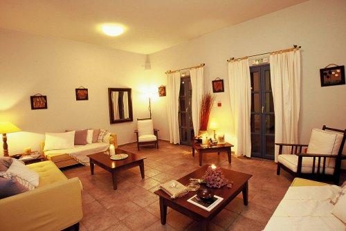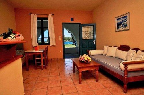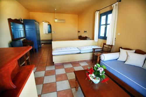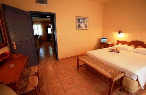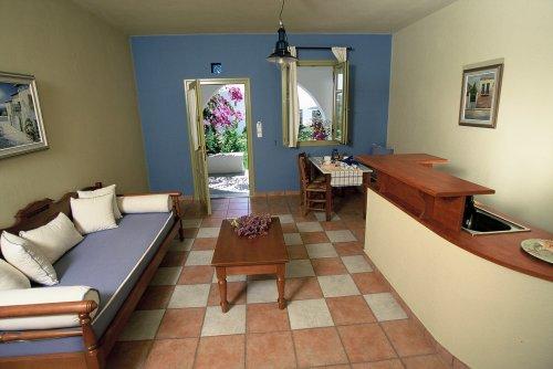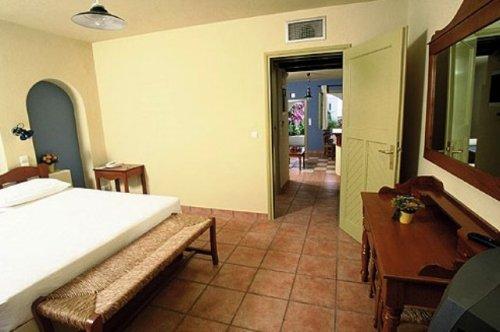 Гости могут разместиться в люксах с традиционным кикладским декором, балконом или террасой с видом на сад или море. В вашем распоряжении номера с кондиционером, гостиной зоной, обставленной удобной мебелью, и основными удобствами, такими как телевизор, холодильник и мраморная ванная комната.