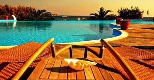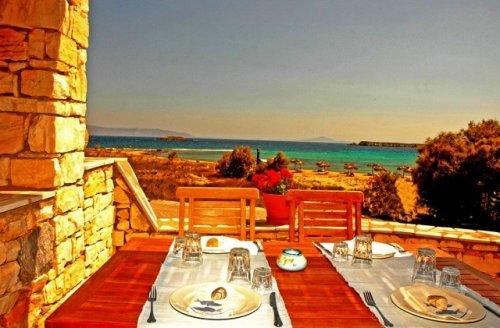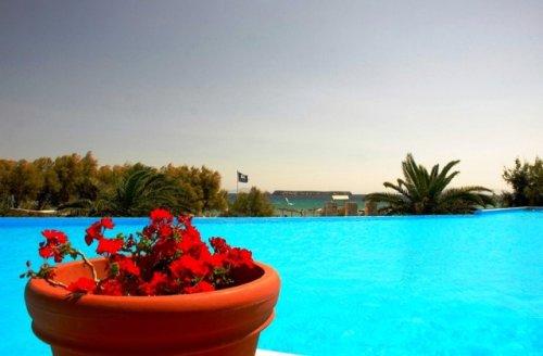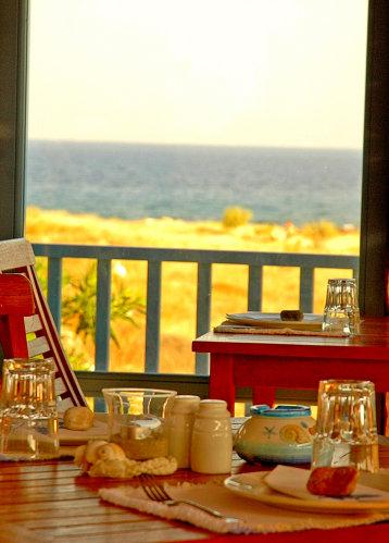В баре-таверне курорта Acqua Marina с потрясающим видом на Эгейское море готовят морепродукты и блюда на гриле и подают напитки узо, раки, а также вино или пиво.