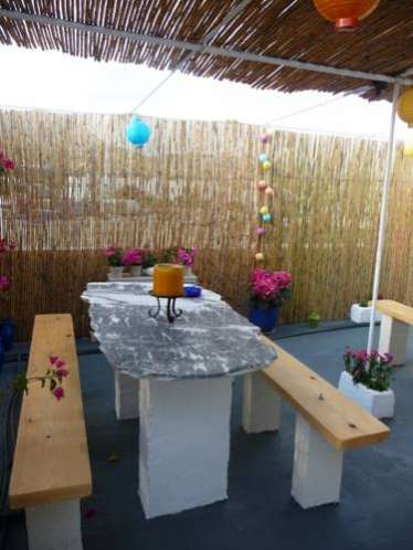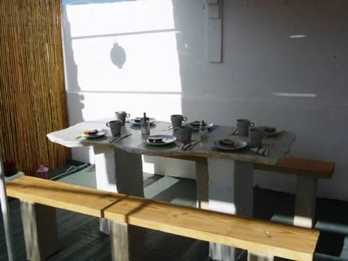 Гости могут позавтракать на затененной террасе со столами и скамейками, расположенной на крыше отеля Margarita.