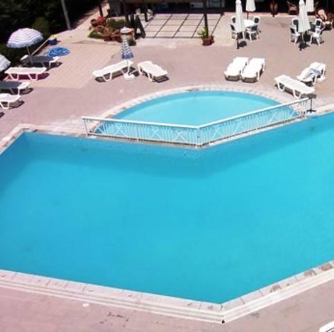 К услугам гостей также солнечная терраса с шезлонгами и зонтиками и детский бассейн.
