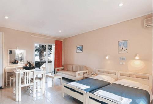 Номера-студио и апартаменты отеля Santa Helena Beach оформлены в светлых тонах. В них оборудована мини-кухня с холодильником, плитой и обеденной зоной. Все номера и апартаменты оснащены телевизором, а в некоторых также имеется гостиный уголок.