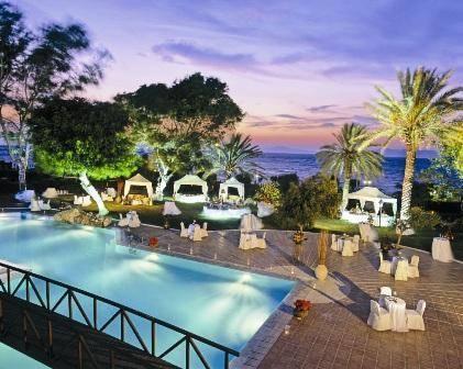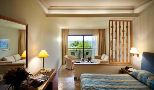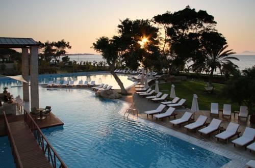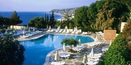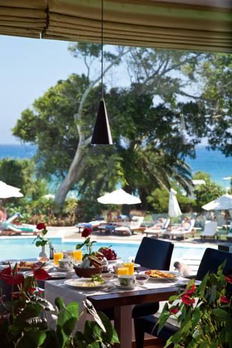 Этот 5-звездочный отель находится на склоне зеленого холма, всего в 50 метрах от пляжа Иксии. К услугам гостей спа-салон с крытым и открытым бассейнами, а также 3 ресторана и 4 бара.